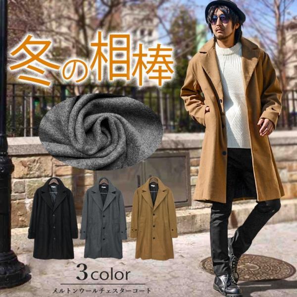 選べるメルトンチェスターコート ステンカラーコート メンズ コート ジャケット チェスター ステンカラー ゴルフ ファッション ロングコート スーツ 通勤 通学 M L Xl 黒 紺 ブラック グレー チャコール キャメル ネイビー 秋 冬 カジュアル ビジネス 暖かい 防寒 大人